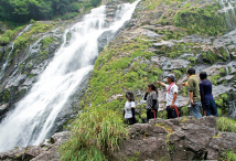 前日の登山でくたくたの四万十高校生。栗生のメヒルギ、大川の滝、西部林道を回り、再び船へ。