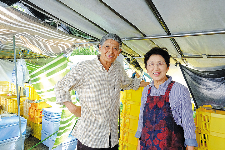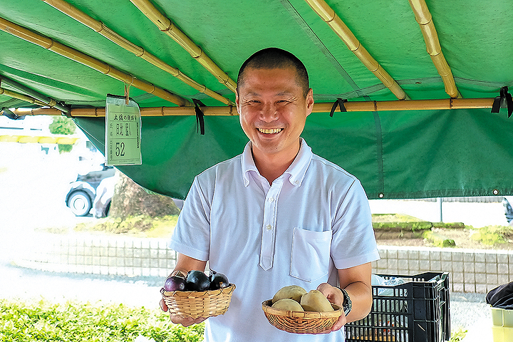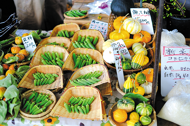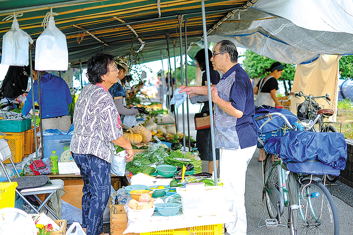 たくさんの観光客が訪れる日曜市とは違って、木曜市は静かで落ち着いた雰囲気が特徴的。高知県庁から南に進んだ先の街路、約300mにわたってオフィス街のど真ん中で開かれている。朝の通勤前に、お昼休みのひと時に、スーツ姿のOLさんたちがお店の前で足をとめては、普段の食材を買い求める。「のんびりしちゅうき、売りゆうほうもホッとする。ていねいに接客できるねえ」と話すお店の方も多い。「学校の先生だったんですが、いまは子どもの安心のために、できるだけ農薬を使わずに野菜をつくっています」と話すのは「あんしん安全野菜ひび」さん。長年出店している「永野農園」さんも、ひとつひとつ手摘みした新鮮なブルーベリーを、生食用・ジャム用など5種類に選別して、お客さんに提供。「生活市」と呼ばれる木曜市ならではのていねいさを感じさせる。