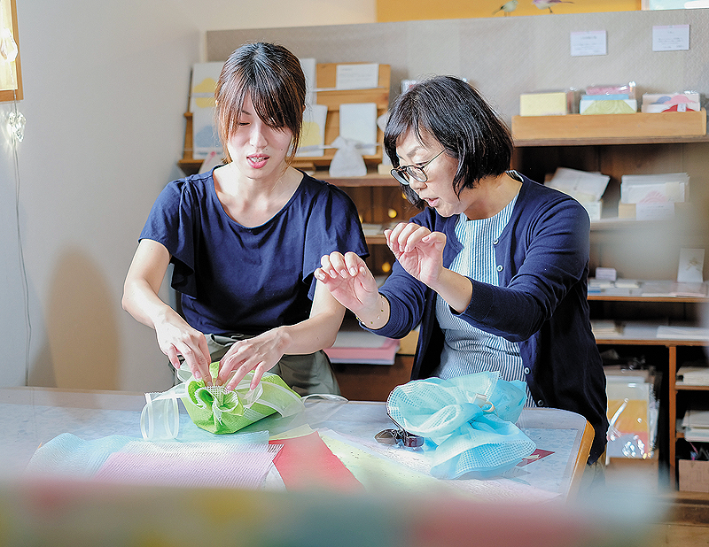 若い女性が心惹かれる 土佐和紙を使用した ラッピングのワークショップ