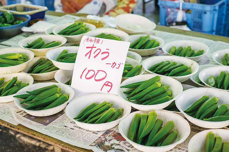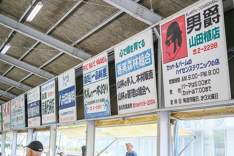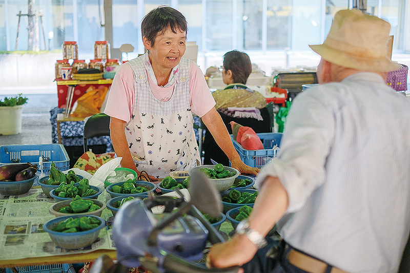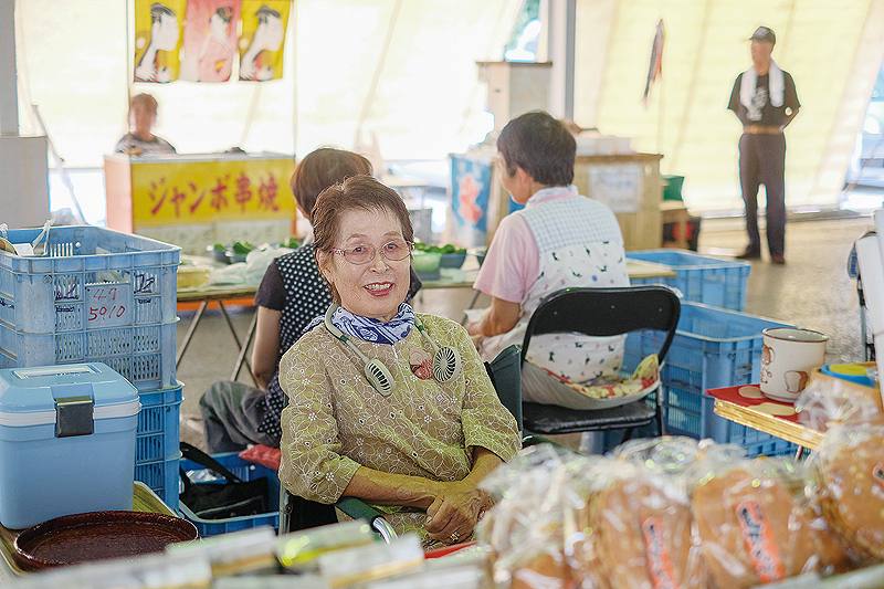 土佐山田の平成日曜市は、高知市から東へ車で約30分ほどの距離にある香美市土佐山田町で、50年以上にわたって続けられてきた曜日市。広々とした物部川流域で生きる生産者や地域住民の生活市として、かつては高知市の日曜市にもおとらぬほどの活気と賑わいをみせていた。出店者組合で現在理事長を務める吉岡光洋さんは、「20年ほど前の最盛期には、出店者は150店以上で、来場者も1日で2000人は超えてたね。あんまり人が多いき、会場で身動きがとれんかった。トイレも行けんくらいやった」と、当時を振り返る。現在の出店者は21店。地域の高齢化に伴い減少しているが、それでも、半生とも言えるほどの長い時間を共に過ごしてきた売り手と買い手がともに生きる温かいコミュニティとして、今日も続いている。