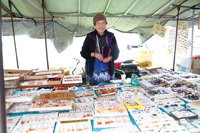 「日曜市」といえば、お店を出す生産者さんが手塩にかけて育てた農作物やその加工品、さらに芋天や田舎寿司などのグルメを想像する人が多いはず。そんな中、実は職人さんお手製の工芸品を提供するお店も多く並んでいるのをご存知だろうか?例えば、中の橋通り近くに出店する中山さん。当初は花の球根などを販売していたが、ご主人の宿毛市への転勤をきっかけに珊瑚を使った商品の取り扱いを開始。自ら珊瑚を加工しており、「珊瑚の製品は高いと思うかもしれんけんど、ウチのは手頃やきねぇ」と笑う。他にも、土佐打刃物や焼き物、金物細工や木工製品などの伝統的な物から、ガラス製品やセメントで作った小さな電車の模型など、老若男女が楽しめる工芸品も多数。食事の買い出しや食べ歩きをしつつ、これらの工芸品のお店に注目しながら日曜市を散策するのもまた楽しい。