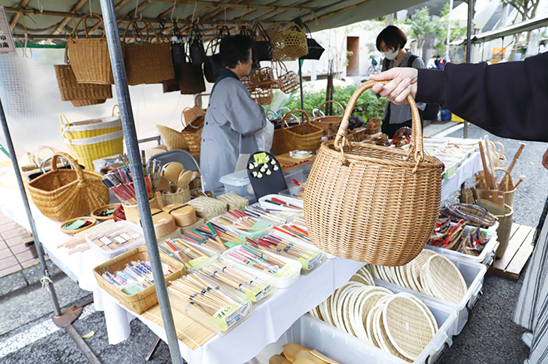 今回は趣向を変えて、おなじみの日曜市に並ぶ工芸品とそのお店、さらに意外と気軽に楽しめる「コケ玉」作りの材料や手順をご紹介。