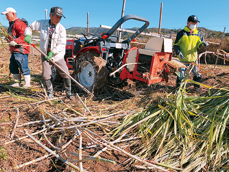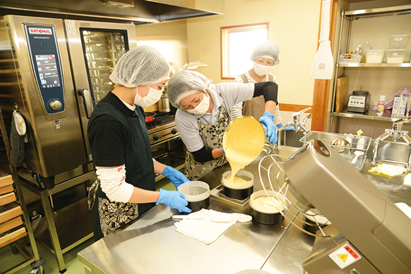 集落活動センターといえば、基本的には市町村内のいくつかの地域がまとまって設立するのに対し、「集落活動センターげいせい」は芸西村全体で設立した、県内でも珍しい「一村一集落活動センター」。まずは地域それぞれの要望や意見をまとめるために、役場と協力して各地域の元気な人をメンバーに引き入れることに注力。集まったメンバーで地元を良くする方法を話し合い、耕作放棄地を利用したしきみとサトウキビの栽培と竹害に苦しむ竹林の整備、さらにサトウキビから作られる地元名産の白玉糖(黒糖)などを使った「加工品の開発」を目標に掲げた。それから約3年、今ではしきみ園7反、サトウキビ畑2反、さらにケーキや焼き菓子などさまざまな商品を開発・販売するまでに。会長の清岡さんは「県内でも有数の『元気な集落活動センター』だと自負しています」と胸を張る。「確かに皆さんワイワイと楽しそう。応援したくなりますね」と岡さんも感銘を受けた。