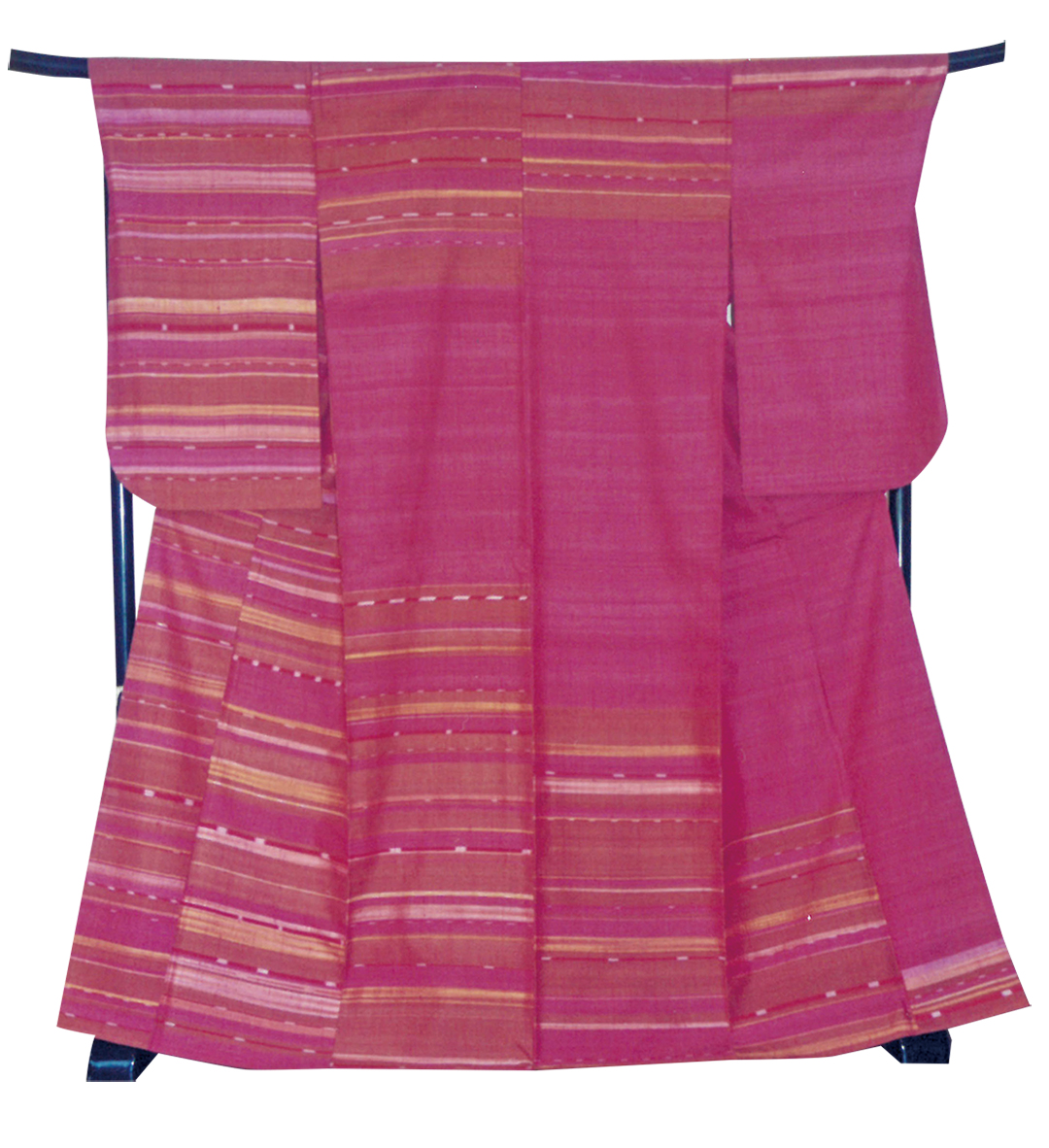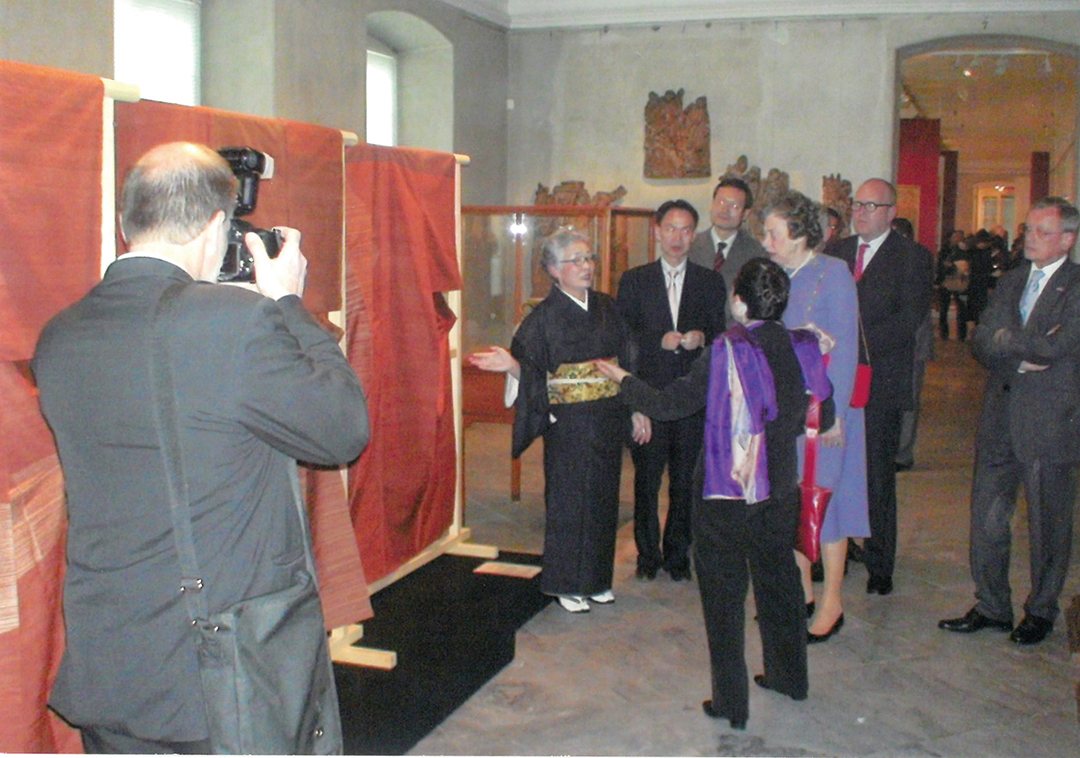 そうして国内で活躍する中、今度は「日本の着物や養蚕の文化を継承する道を探りたい」と日本のプライドを背負って有志とともに海外へ。平成12年に招かれた、ドイツのハンブルク民族学博物館の企画展では桜などで染めた50点の着物を披露。それが呼び水となり、着物展は世界各国の美術館・博物館でも行われた。「ヨーロッパをはじめ、アフリカのタンザニアなど20数都市に行きましたが、着物はたくさんの都市でとても高く評価されました。着物は洋服と違って直線裁ちなので、着る人の体型を選ばない日本ならではの民族衣装。現地の方に即興で着付けて差し上げると、みなさんとても喜ばれましたね」と誇らしそうに当時を振り返る。日本の伝統技術を駆使して織り上げた渾身作は、現地の人々から予想以上の共感を得、「ヴォーグ」「エル」といった世界的なファッション誌をはじめ、現地の新聞など、さまざまなメディアで取り上げられ、現在もデンマーク王立工芸博物館に収蔵されている。