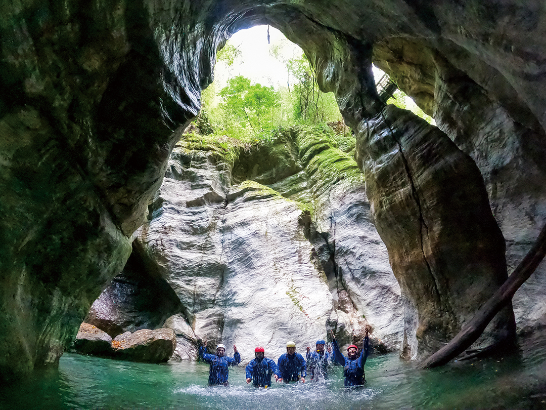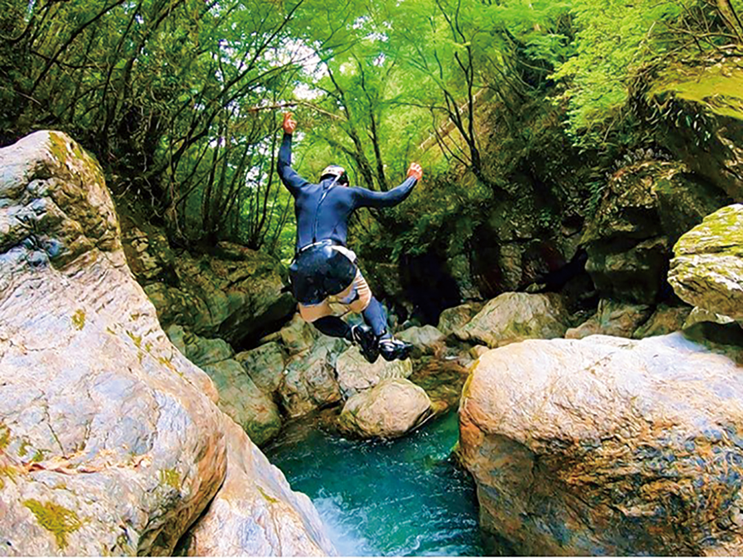 準備を進めながら、地元の仁淀川町が管理する旧校舎のシェアオフィスを借りると、中津渓谷でキャニオニングを行うに当たって、役場はもちろん、地元住民の元にも足を運んだ。そして、令和2年の3月には、最初のツアーを実施。その後はコロナ禍に入るが、天候に恵まれた最初の夏は大盛況のうちに過ぎていった。キャニオニングに苦手意識がある人でも安全に遊べることも喜ばれた。神澤さんは「中津渓谷は前半・後半で景色が変わってきます。最初は水に慣れたり、ジャンプして遊んだり。しかし、渓谷を抜けていくにつれて、より雄大な、非日常の光景に入っていけるんです」と話す。まだ見たことがない中津渓谷が、そこには広がっている。