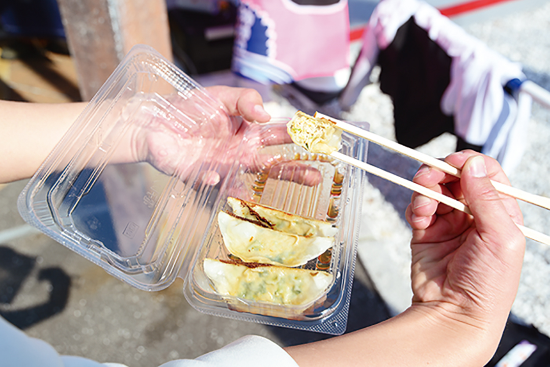 農作物や伝統工芸品が並び、売り手と地元民のお客さんが会話しながら売り買いをする。かと思えば、県外客や外国の方がお土産物の購入やその場で買ったフードやドリンクを楽しむ…、そんな風景がそこかしこで展開されている現在の日曜市。昨年行われた四半世紀ぶりとなるルール改正を機に、火や油を使った新店舗が誕生した。タコスのレシピを教えてくれた「Masacasa Tacos」や鮮度の良いカツオを使った餃子を提供する「カツオ餃子 徳吉丸」はその一角であり、道行く人々の注目を集めている。新店以外にも個性的な商品をそろえるお店が点在しており、犬猫用の魚ジャーキーを扱う「Belle&Alice」や、こだわりの食材で作るパンやオシャレなサンドなどを提供する「たねまる」、10種類以上ものポン菓子をそろえる岡島さんのお店などは、見るだけでも楽しい。
