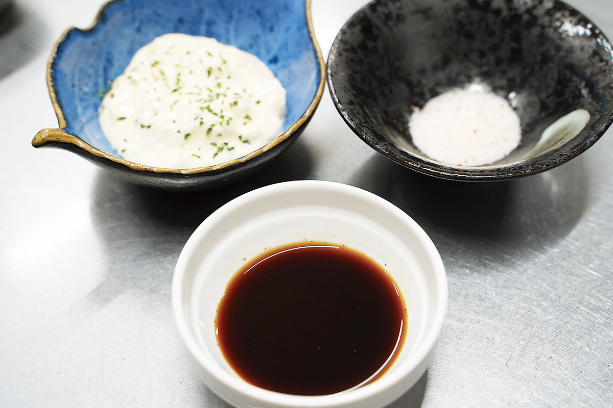 手順5/塩・ソース・タルタルソースなど、お好みの味付けを用意。