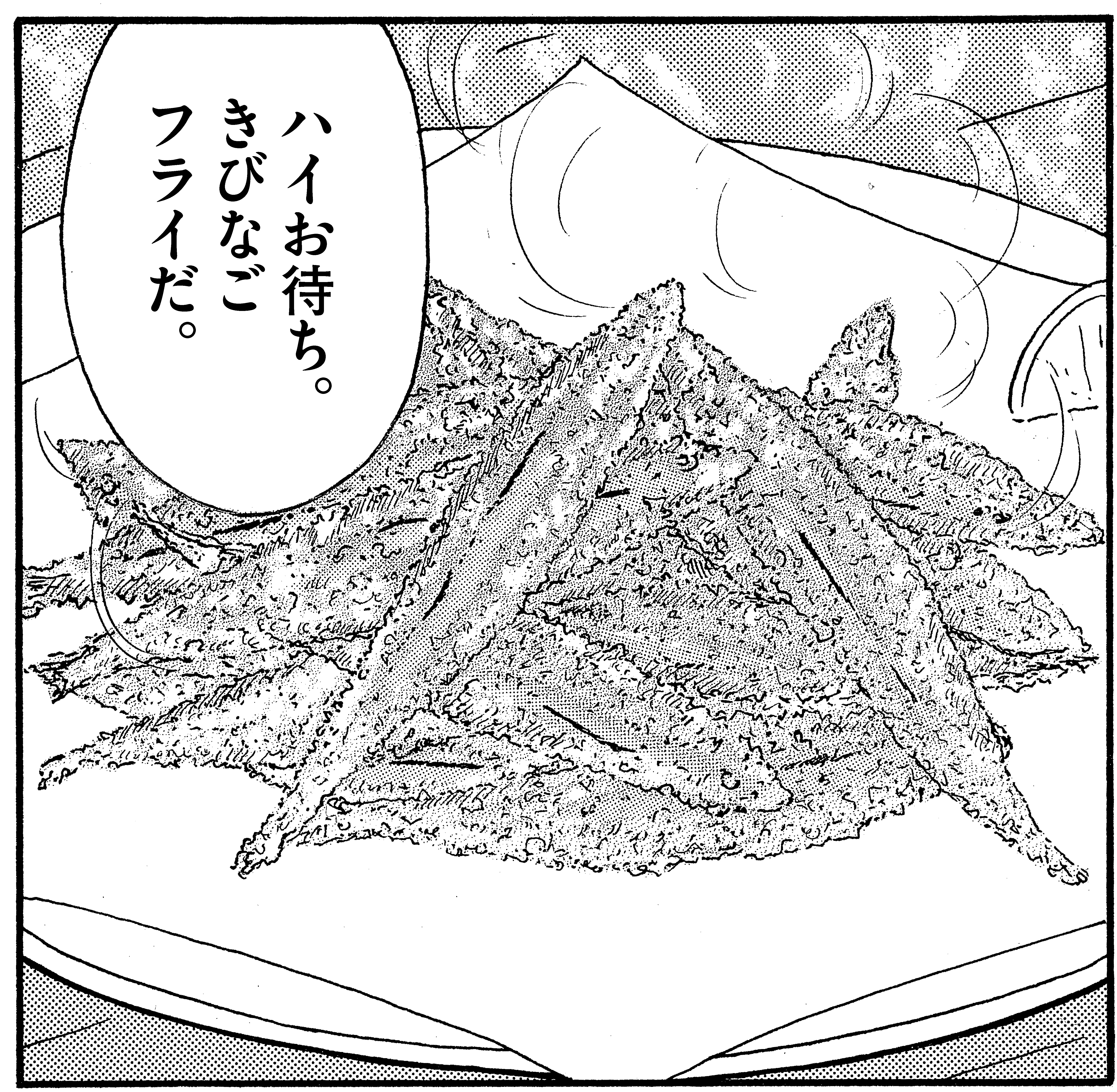 高知県四万十市出身の漫画家、安倍夜郎さんが描く『深夜食堂』でも、きびなごのフライが描かれている。物語は、深夜0時~朝7時まで営業する小さな飯屋 が舞台。マスターと客との交流が、心温まる料理と共に描かれる。平成19年から「ビッグコミックオリジナル」(小学館)にて連載中。現在、単行本は第24巻まで発売中。