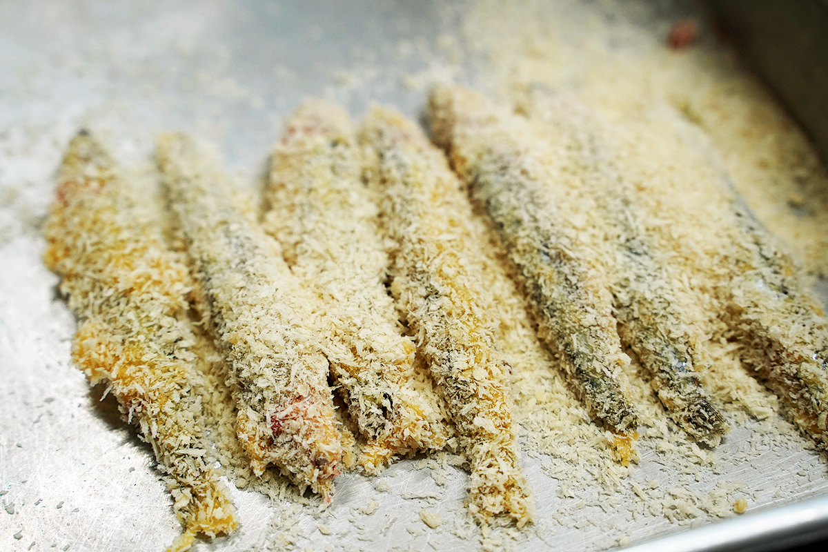 きびなごは鮮度が大事。宿毛市ではその日に揚がったばかりの新鮮なきびなごが食べられるがよ。きびなごをフライで美味しく食べるなら、衣を薄くすることがおすすめ。サクサクとした食感で、きびなごの旨味がしっかりと味わえるがよ。きびなごはいろんな調理方法があって、酢でしめておから寿司をくるむ郷土料理もあるがやき。