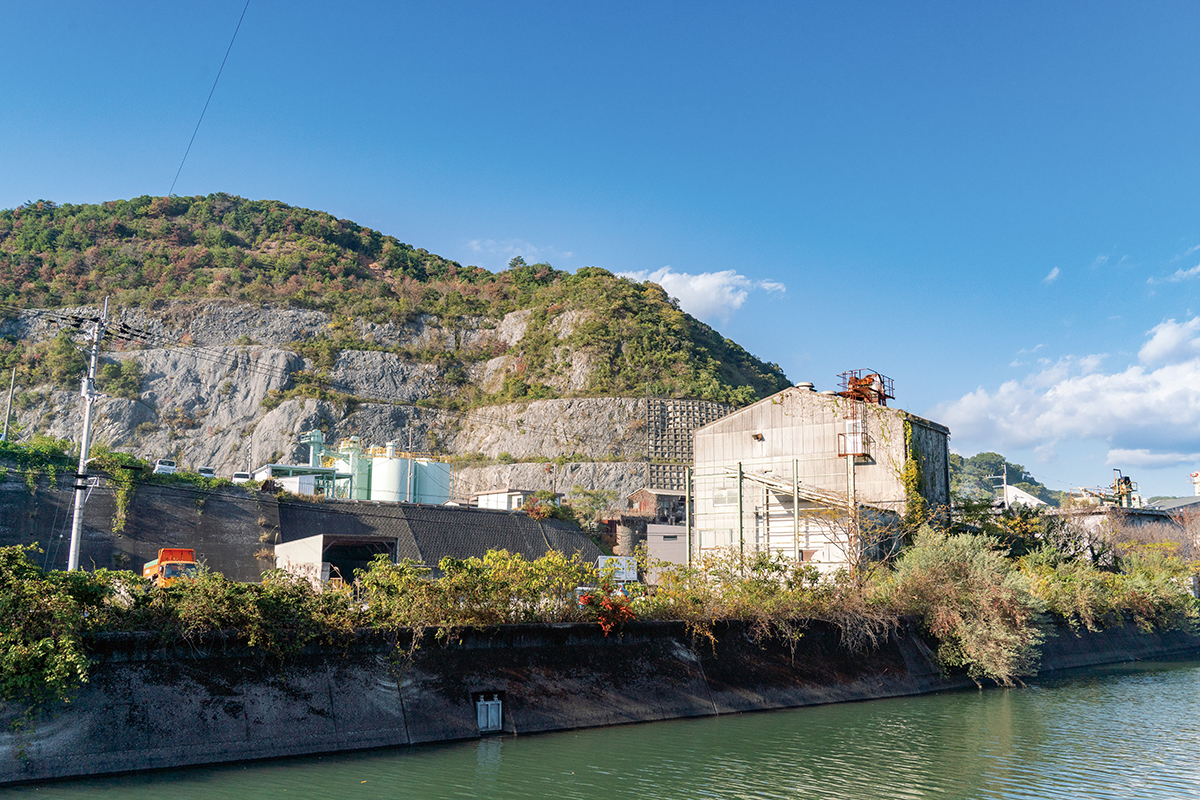 南国市稲生(いなぶ)の石灰鉱山跡。石灰原石採掘は平成3年に終止符を打ったが、一帯には現在も高い加工技術で活躍する企業が立ち並ぶ。